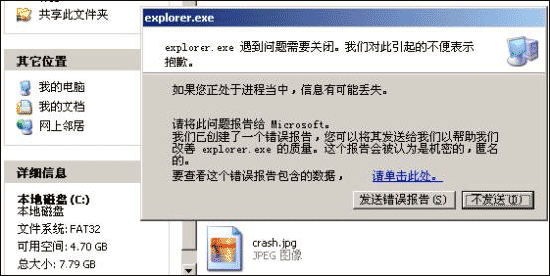 使用WinXP自带图象查看器打开恶意JPEG文件时,会导致WinXP自带图象查看器的崩溃: