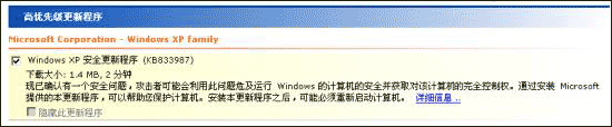 如果没有更新该漏洞(KB833987),则会升级目录中出现如下说明: