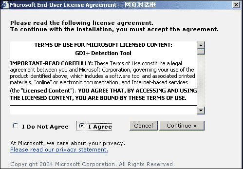 4、 则GDI+ Detection Tools 会返回需要更新的地址链接列表,用户可以根据链接进行相应安装。